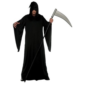 Just the costume for your next haunted gathering or Halloween party. This black, full-length, hooded robe with drop sleeves comes with an optional belt. Care Instructions: Hand wash cold water with mild soap. Tumble dry low. For best results hang or lay flat to dry.. Care Instructions: Hand wash cold water with mild soap. Tumble dry low. For best results hang or lay flat to dry.