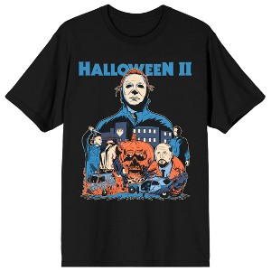 Halloween II Michael Myers, Samuel Loomis, Pumpkin skull, City and Cars Illustration style on Black Short Sleeve Adult T-Shirt - 2 of 3Halloween II Michael Myers, Samuel Loomis, Pumpkin skull, City and Cars Illustration style on Black Short Sleeve Adult T-Shirt - 3 of 3