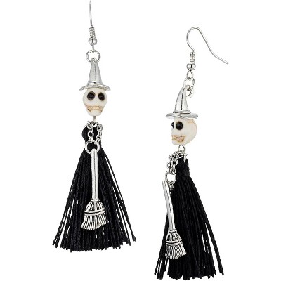 - : These earrings feature a quirky combination of a skeleton head and tassels, adding a touch of mystery and fun, making them ideal for Halloween parties.