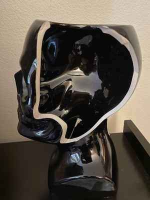 Decorate your home for the creepy season with this Halloween Skull Bust Vase from Threshold™. This black vase features a Halloween skull bust with an opening in the head. You can fill this watertight vase with fresh blooms or faux florals and display it on your mantelpiece or console table to add a fun and eerie touch to your decor.