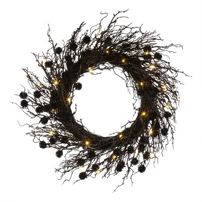 String Lights: The spooky wreath features 20 LED lights powered by 2 AA batteries (batteries not included), ensuring its enchanting appeal shines bright even in the darkest of night with low power consumption, adding a magical touch to your festival decor
