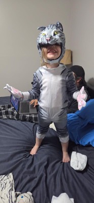 Bring you and your toddler's love for kitty cats fully to life with this Curious Cat costume. This is a zip-up jumpsuit that is designed to look like a gray and white, tiger-striped kitty. The included mitts and boot covers give your child some claws while the hood has the purrfect design details to look like a cat's watchful face. The tail finishes off this cute look and has your child ready for adventure.