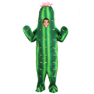 This Toddler Green Cactus Costume is a sharp idea for Halloween! Get your little one looking like a dessert darling in the full-covered costume jumpsuit. A zipper in the front makes dressed easy while the attached hood, enclosed sleeves with slits for hand use, and attached shoe covers ensure there's little need for accessories. Attached felt "needles" and a large pink flower complete the costume.
