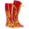 Get ready to rumble with these Men's Hulk Hogan Wrestling Boots, the ultimate footwear for any wrestling fan ready to dominate the ring! These boots are crafted from 100% polyester with a striking shiny red synthetic leather finish that gleams under the spotlight. The iconic yellow flame graphics on the sides instantly evoke the power and energy of Hulkamania, making these boots a must-have for anyone looking to channel the spirit of the wrestling legend.Comfort and practicality are key with these boots. Inside, a foam-backed poly knit lining ensures a snug fit, while the white rubber soles provide stability during every move. The zipper along the inner side of each boot allows for easy on and off, so you’re always ready to step into action. The yellow fabric shoelaces at the center add an extra touch of authenticity to the look. Officially licensed, these boots are perfect for cosplay, Halloween, or any event where you want to show off your Hulk Hogan pride!