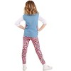 The Fun Costumes Back to the Future Jennifer Parker Costume for KidsJennifer Parker always has a positive attitude! When Marty and Doc Brown head on a time-traveling adventure, she has no problem jumping right into the DeLorean to see what awaits her. Of course, she looks like she could take on just about anything in that classic 80s outfit that she wears! Now, your little girl can get the same look when she wears this officially licensed costume.This Back to the Future Jennifer Parker Costume is inspired by the character from the hit movie series. It comes with a white shirt and a blue button-up vest. It also comes with a pair of floral print pants to recreate her iconic 1980s style from the film. She'll be ready for a trip to 2015 in no time!Back to the Future is a trademark and copyright of Universal Studios and U-Drive Joint Venture. Licensed by Universal Studios Licensing. All Rights Reserved.Product Details:100% polyester shirt and vest, 73% viscose, 23% nylon, 4% spandex pantsWhite blouse has wide wing collar, buttons at center front and sleeve cuffsVest has metal snaps at center front, generous patch pocket on each sideSlim-fit pants have wide elastic waistbandOfficially licensed. About Us:Fun Costumes are exclusively made by us and begin with passion, teamwork, and industry expertise decades in the making. Our products are proof that with the right people even a simple idea can grow into something incredible. We started in a small garage in Minnesota, providing costumes to our local community, and now we’re creating costumes for people all around the world!