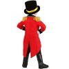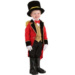 The Fun Costumes Toddler Circus Ringmaster CostumeWhat is the best part of a great show? Is it the booming lights? Or perhaps the spectacular acts or the awesome animals? The secret is that it is the memories that come from the experience. It's great to look back, remember, and smile for years after the show, itself. And that's exactly the goal of our own exclusively Made by Us costumes, too. We craft the best costume styles available and we're happy to outfit our customers with top costumes for kids and adults. This Kid's Circus Ring Master Costume is one of our favorite designs for kids. When your child feels like he or she is in charge of the circus show under the big top tent, we're sure they'll agree!Attention to DetailThis Circus Ringleader costume features a vest front and jacket combo that gives you the blend of bright gold brocade and gold trim along with the rich red and velvet black of a lion tamer costume. The jacket features long tails that fall to the back of the knees, black cuffs, and gold epaulets with tassles. The black top hat has a velvet finish and it has a ribbon of gold for that extra shine. All these pieces together are designed with top materials and expert construction so that your child will be ready to hop into the center ring!Product Details:100% polyester twill, velvet, brocade and satin fabricsRed twill tailcoat jacket has black velvet cuffs, collar and lapels with gold braid trimGold brocade vest front has fabric neck loop and ribbon waist tiesRed satin bow tie has elastic neckbandBlack velvet-covered foam top hat has gold ribbon bandBlack vinyl boot tops have elastic band under footAbout Us:Fun Costumes are exclusively made by us and begin with passion, teamwork, and industry expertise decades in the making. Our products are proof that with the right people even a simple idea can grow into something incredible. We started in a small garage in Minnesota, providing costumes to our local community, and now we’re creating costumes for people all around the world!Help your little one craft fun playtime circus memories with this Child Ringleader Circus Costume for Toddlers!