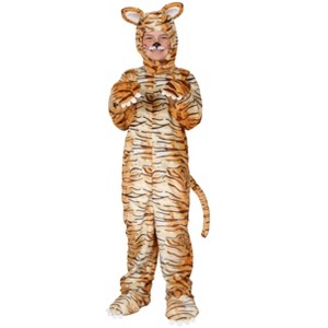The Fun Costumes Classic Tiger Costume for Kids Animal costumes are one of the most popular Halloween costumes for kids year after year, which is why we are happy to offer our selection of big cat costumes to let your little ones bring the mightiest jungle hunters right into your own living room! This Kid's Tiger Onesie outfit features attentive design details and quality materials to make sure your little one has an amazing costume experience. With a comfy fit and fierce stripes your kiddo is going to be the coolest cat in town!Product Design:This Tiger big cat costume is made with 100% polyester faux fur. The bodysuit is printed with tiger stripes and the suit fits with a hook and loop closure. Mitts are sewn to the sleeve cuffs and can fold back to free the hands. It features terrific tiger details like felt claws sewn to mitts and a stuffed tail sewn to back of suit. The tiger headpiece features ears sewn to top and it fits with a hook and loop fastener under chin. Along with matching shoe covers your child will be ready to go on a jungle prowl this Halloween!Product Details:100% polyester, faux furBodysuit has hook & loop closure & stand-up collarMitts sewn to sleeve cuffs can fold back to free handsFelt claws sewn to mitts, stuffed tail sewn to back of suitHeadpiece has ears sewn to top, hook & loop fastener under chinShoe covers have rib knit ankle cuffs, elastic band under footAbout Us:Fun Costumes are exclusively made by us and begin with passion, teamwork, and industry expertise decades in the making. Our products are proof that with the right people even a simple idea can grow into something incredible. We started in a small garage in Minnesota, providing costumes to our local community, and now we're creating costumes for people all around the world.