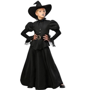 The Fun Costumes Classic Black Witch CostumeThere is nothing as magical as stepping into a costume and feeling like the whole world has changed! That's the goal we have with all our Made by Us costumes, especially this Girl's Witch Costume. We've taken inspiration from all the most famous witches from all over the world and brought the best aspects together so your kiddo can not only practice some spellcasting but fly right to the head of the coven!Attention to DetailThis Black Witch Costume for girls is a refined take on the iconic look of Halloween's iconic supernatural mascot. The black, polyester dress zips up the back and has faux buttons. It is the Victorian lace collar and the black lace on the wide sleeves that make this look truly authentic. The full skirt flares out just enough to give that magical twirl that we all secretly love. Top off the look with the fabric hat which always has the perfect shape thanks to the wiring along the brim!Product Details:100% polyester fabricsDress has zipper back with faux button frontBelt is faux leather with metal buckle and hook and loop closure in backHat is soft fabric with wire brim for shapingAbout Us:Fun Costumes are exclusively made by us and begin with passion, teamwork, and industry expertise decades in the making. Our products are proof that with the right people even a simple idea can grow into something incredible. We started in a small garage in Minnesota, providing costumes to our local community, and now we’re creating costumes for people all around the world!Help your kiddo feel like true magic is at work with this elegant twist on the classic Witch!