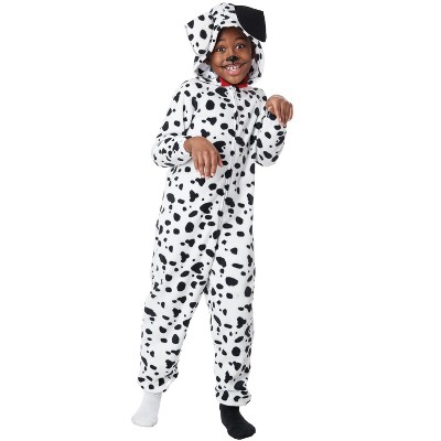 The Fun Costumes Cozy Dalmatian Onesie Costume for GirlsDalmatians are famed for their furry spotty coats and for being firehouse friends. Now your child can roleplay as one of these amazing dogs this Halloween with our Cozy Dalmatian Costume for girls! The outfit comes with a speckled jumpsuit that has a plush tail in back. It also has a hood with black dog ears on top. It has a drawstring around the waist and a zipper in front to ensure a great fit. The final piece to this costume is the red collar with a golden dog tag, which fits around the neck like a choker. We're sure your kiddo is going to be quite a cute doggie when you wear this dalmatian jumpsuit!Product Details:100% polyesterJumpsuit has zipper at center frontDrawstring around the waistSoft-sculpted tail is attached at the back of the jumpsuitEars attached on top of hoodCollar has hook and loop fastenerAbout Us:Fun Costumes are exclusively made by us and begin with passion, teamwork, and industry expertise decades in the making. Our products are proof that with the right people even a simple idea can grow into something incredible. We started in a small garage in Minnesota, providing costumes to our local community, and now we're creating costumes for people all around the world.