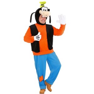 Disney Goofy Costume Plus Size Adult:Our Plus Size Goofy Costume perfectly captures Goofy's unique style! This outfit includes a vibrant orange cuddle plush shirt, comfortable blue pants with an elastic waist for a perfect fit, and a plush black vest that completes the look. The oversized white gloves add a fun and cartoonish flair, true to Goofy's style. The fiber-filled headpiece is the cherry on top, equipped with a hook and loop fastener under the chin to ensure it stays in place as you channel your inner Goofy.This costume isn't just for Halloween—it's a fantastic choice for costume parties, Disney theme events, or even a quirky, fun day out. The soft fabric blend of 94% polyester and 6% spandex promises comfort and flexibility, letting you move freely and enjoy the festivities without a hitch. Whether you're attending a themed party or forming part of a group Disney ensemble, this Goofy costume is designed to bring smiles and laughter wherever you go. Bring some joy and a bit of goofiness to any event with this endearingly delightful outfit!Top of FormProduct Details:94% polyester, 6% spandexCuddle plush shirt has cuffed hemline and sleevesHook and loop fastener on back of neckCuddle plush pants have an elastic waistband, cuffed pant legsCuddle plush foam gloves have embroidered detailsCuddle plush black vest fits over shirtFiber filled Goofy head has hook and loop fastener under chinOfficially licensed Disney Goofy costumeAbout Us:Fun Costumes are exclusively made by us and begin with passion, teamwork, and industry expertise - proof that with the right people even a simple idea can grow into something incredible. We started in a small garage in Minnesota, and now we're creating costumes for people all around the world.