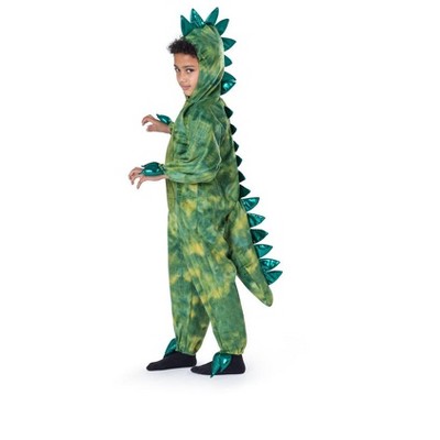 The Fun Costumes Kid's Corduroy T-Rex CostumeAt Fun Costumes, we happen to know a thing or two about Halloween Costumes and we've got news for you that shouldn't come as all that much of a surprise. Dinosaur costumes for kids are one of the most popular themes every year! Children love suiting up as the prehistoric beasts, which is why we're proud to offer this Classic T-Rex Costume for kids. Exclusively made by us, we're sure you'll love the quality and detailed design of this dinosaur jumpsuit!Product Design:This T-Rex Dinosaur Costume for boys and girls is a classic, fun dinosaur costume style. It includes a jumpsuit, attached mitts, a hood headpiece, and a pair of shoe covers. The suit is made with soft, corduroy blend fabric and features fleece scales. The matching hood headpiece has a soft-sculpted snout with fleece teeth and scales. The matching gloves and foot covers complete the outfit and will turn your kiddo into quite the cute dinosaur!Product Details:90% polyester, 10% nylon corduroy & fleece fabricsStuffed fleece scales down back & tail of jumpsuit alongside zipperMitts sewn to sleeve cuffs fold back to expose handsHeadpiece fastens with hook and loop fastener tab under chinSoft-sculpted dinosaur snout, teeth & spikes on top & back of hoodFoam shoe covers have rib knit ankle cuffs, elastic band under footAbout Us:Fun Costumes are exclusively made by us and begin with passion, teamwork, and industry expertise decades in the making. Our products are proof that with the right people even a simple idea can grow into something incredible. We started in a small garage in Minnesota, providing costumes to our local community, and now we're creating costumes for people all around the world.When you need a dinosaur costume kids will love, this corduroy dinosaur costume is ready to make magic and memories!