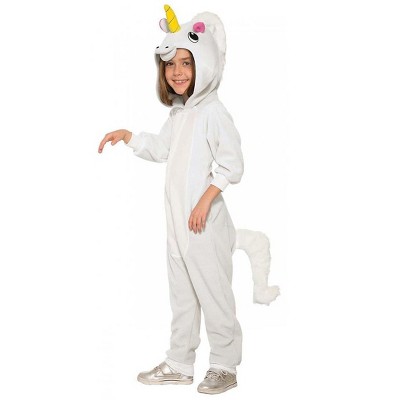 The Fun Costumes Kids Unicorn Onesie CostumePick up this Fun Costumes Unicorn Onesie Costume for your little girl and let them have a fun rainbow adventure with all sorts of fantastic animal friends. Crafted with imagination and fun in mind, this comfy and exciting Made by Us design is one of our exclusive originals and offers superb quality and detail.Product Design:This fun unicorn onesie is a complete look in one piece! A zipper runs up the front, while the onesie itself has a soft pink and white color scheme. Long pants and full sleeves with ribbed knit ankle and wrist cuffs ensure comfortable wear. Silver foam wings come attached to back, along with a pink horse tail. Finally, the stuffed hood has a sculpted horn in front, a pink mane, and big eyes with hearts in the middle. Product Details:100% super soft polyester onesieAttached hood has stuffed snout, horn and appliqued eyesRib knit wrist and ankle cuffsUnicorn holographic wings attachedPink mane attached on the backExclusiveAbout Us:Fun Costumes are exclusively made by us and begin with passion, teamwork, and industry expertise decades in the making. Our products are proof that with the right people even a simple idea can grow into something incredible. We started in a small garage in Minnesota, providing costumes to our local community, and now we’re creating costumes for people all around the world.Grab this Unicorn Onesie Costume for your little one and let them have a fantastic Halloween adventure!