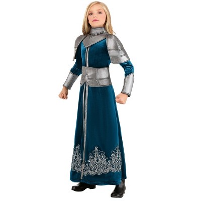 The Fun Costumes Winter Warrior Costume for GirlsIf you hear the call of the herald's trumpet you're going to want to grab a quick costume style for some serious fun. And we cannot wait to be a part of your history by offering Made By Us costumes in some of the coolest medieval and renaissance themes around! We're sure your child will find this Girls' Winter Warrior outfit to be ready for faux battles or for spending time safely behind the castle's walls.Product Design:This Renaissance Winter Warrior costume for kids is designed to be comfortable and easily worn with the style of a medieval assassin or soldier of fortune. The faux leather jacket has an authentic styling and feel thanks to the patterned stitching to make it look like woven leather. The cape and skirt have a matching rough-hewn appearance with just enough weight to look winter-worn while being light enough to be comfortable. The belt finishes off the look with extra length to make her look like a true medieval assassin.Product Details:95% polyester 5% spandex shirt 83% polyester 17% rayon cape and skirt tweed & faux leatherFaux leather jacket has embossed basket-weave designJacket closes with hook & loop fastener complete length of center backJacket has decorative rawhide cord lacing at center front and attaching sleeves to bodiceTweed skirt has elastic waistbandFaux leather belt has antique-brass-tone metal buckleTweed cape has faux leather yoke & collar with decorative lacing at right shoulderCape closes with hook & loop fastener at right side of collarAbout Us:Fun Costumes are exclusively made by us and begin with passion, teamwork, and industry expertise decades in the making. Our products are proof that with the right people even a simple idea can grow into something incredible. We started in a small garage in Minnesota, providing costumes to our local community, and now we’re creating costumes for people all around the world!
