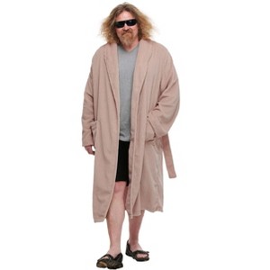 The Fun Costumes Big Lebowski The Dude Bathrobe Costume Grab a cozy drink and relax at home or at the grocery store with this officially licensed The Big Lebowski The Dude Bathrobe. This super-soft chenille-like bathrobe comes with a belt that connects through belt loops at the waist. The robe has two front pockets so you too can be just like The Dude. Crafted by our expert team of costume designers, this costume robe is Universal Studios officially licensed for authentic Big Lebowski cosplay!The Big Lebowski is a trademark and copyright of Universal Studios. Licensed by Universal Studios Licensing LLC. All Rights Reserved. A Note to Parents: The Big Lebowski is rated R. Consult www.filmratings.com for further informationProduct Details:100% polyester chenille fabricSame-fabric belt threads through loops at waist; tie as desired2 front pocketsShawl collarOfficially licensed. About Us:Fun Costumes are exclusively made by us and begin with passion, teamwork, and industry expertise decades in the making. Our products are proof that with the right people even a simple idea can grow into something incredible. We started in a small garage in Minnesota, providing costumes to our local community, and now we're creating costumes for people all around the world.