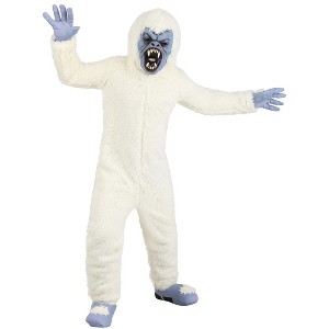 Turn your child into the coolest abominable critter around with this amazing this Yeti Costume for kids! It features a jumpsuit crafted with white plush fleece fabric. The pullover mask feature a latex yeti face and matching gloves and slippers complete the primate-like look. With a comfy fit and frightening yeti face, this costume is a sure-fire hit for Halloween fun!