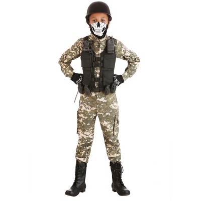 The Fun Costumes Girl's Army Flightsuit CostumeIs your girl ready to take control of a jet plane? Well, it might be a few years before she can actually head to flight school, but until then, this Girl's Army Flightsuit costume is a great way to get her prepared. Artfully and expertly designed by our own design team to imitate real military uniforms, this costume has an authentic look that will have her feeling like a high flyer!Product Design:We designed this costume as an army green jumpsuit with a center-front zipper and elastic at the wrists and ankles. On the left sleeve is a flag patch and on the chest is a USA stencil for style. Zipper-closed cargo pockets adorn the thighs, and decorative zippers on the sides imitate the army utility look. A belt threads through the loops at the waist and ties at the front. It comes with a classic army hat to complete the look.Product Details:100% polyester gabardine fabricCenter-front zipper, elastic at wrists & anklesFlag patch on left sleeve, USA stencil on left breastDecorative zippers on sidesZipper-closed cargo pockets on thighsSelf-tie belt threads through loops at waist & ties at frontFoam hatAbout Us:Fun Costumes are exclusively Made by Us and begin with passion, teamwork, and industry expertise decades in the making. Our products are proof that with the right people even a simple idea can grow into something incredible. We started in a small garage in Minnesota, providing costumes to our local community, and now we're creating costumes for people all around the world.
