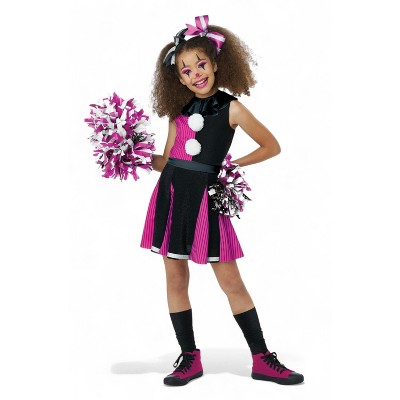 Step right up, darlings, and witness the twisted spectacle that is the Women's Black & Pink Clown Costume. A harlequin's nightmare stitched together with madness and mischief, this outfit is designed for those who prefer their laughter with a side of terror. With a haunting blend of black and pink, this costume lures unsuspecting victims in with playful charm before delivering a spine-chilling performance they'll never forget. Whether you're haunting the carnival grounds or leading a sinister circus, this look is your ticket to the darkest show in town.The dress is a wicked masterpiece; black satin wraps around the bodice, trimmed in eerie gold, while candy-pink pompoms dangle like taunts to your next victim. The puffed sleeves and peplum are striped like a twisted funhouse illusion, a prelude to the layered polka-dot tulle skirt that sways with every sinister step. The matching collar, a frilled, ruffled delight, ties around the neck like a cruel jester's final flourish, framing your face in theatrical horror.No clown is complete without her hat, and this one is a chilling work of art. A tiny, pointed thing, perched like a crown of insanity, it boasts matching satin, pompoms, and a wavy gold trim; because even the most wicked performers deserve a little flair. Slip it on, secure it with bobby pins, and let the chaos begin. With the included armbands, your transformation into a polka-dotted predator is complete, ready to leave an audience of trembling spectators in your wake.Whether you're entertaining spirits in a haunted carnival or stalking the streets on Halloween night, this costume ensures you'll be the star of every twisted nightmare. Pair it with eerie makeup, a menacing grin, and perhaps something sharp hidden up your sleeve; after all, the best jokes always come with a little... surprise. Welcome to the show, my dear. Let's make 'em scream.