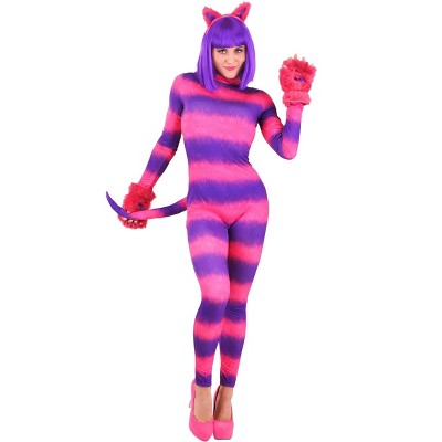 Get ready to enjoy a wonderland of fun with this Women’s Cheshire Cat Bodysuit! Coming from our Made By Us team, this form-fitting costume with included cat paw gloves and a cat ear headband transforms you into the mischievous feline. Pair with other Wonderland looks or keep this exclusive separate for a Halloween full of playful madness.