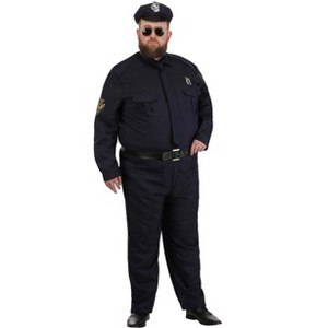 The Fun Costumes Police Costume Plus SizeReady to join the Police Force? You can look just like a Police Officer when you don this realistic-looking Police Costume for men. We know putting on a uniform is one of the most popular choices for a Halloween costume, which is why we put extra attention into getting the details on this costume just right. Another original out of our costume design studios, this costume is artfully and expertly designed by our team of artists, designers, and developers.Product Design:This costume comes with a polyester poplin shirt and pants set. The shirt features an embroidered patch on the right sleeve and has 2 gusseted breast pockets and buttoned epaulets on each shoulder. It secures with buttons at the center front and at the sleeve cuffs. The pants have a false fly with a decorative button at the top and fit with an elastic waistband. The belt is faux leather and secures with a silver-tone metal buckle. The hat has a faux leather bill and wire in the crown for shape. The tie fits with an elastic band and the included plastic badges secure to the shirt and hat or as desired.Product Details:100% polyester poplin fabricShirt has buttons at center front and at sleeve cuffsEmbroidered "Police" patch on right sleeve2 gusseted breast pockets and 2 shoulder epaulets secure with buttonsPants fit with elastic back waistbandFalse fly with decorative button at topFaux leather belt secures with silver-tone metal buckleMatching self-tie necktie includedHat has faux leather bill, wire in crown for shapePlastic molded badges secure with pins on backAbout Us:Fun Costumes are exclusively made by us and begin with passion, teamwork, and industry expertise decades in the making. Our products are proof that with the right people even a simple idea can grow into something incredible. We started in a small garage in Minnesota, providing costumes to our local community, and now we're creating costumes for people all around the world.Get this Plus Size Cop Costume for Men to make sure you have a very memorable Halloween!