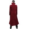 • Long coat is made of deep red velvet fabric which hangs open