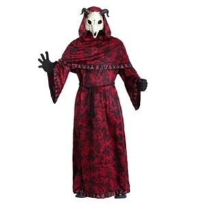 When taking a trip to the out circles it is important to dress the part in this plus-sized Adult Demon Costume. This hooded robe features graphical trim on the cowl and sleeves and includes a belt. A demon skull mask helps keep your face hidden against any other demons you may run into on your journeys to the underworld.