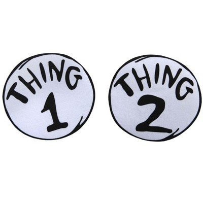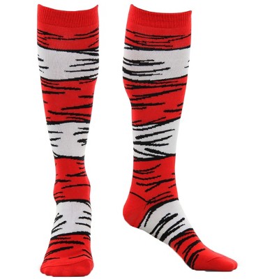 Treat Your FeetIf your Halloween plans include your best pal and you, cutely dressed up as Thing 1 and Thing 2, then you must think about more than the shirt and blue hair, you must plan every detail with meticulous care. You must think about what will go onto your feet, so that when you frolick through neighborhood streets, you aren't mistaken for a monster or clown, which would surely cause a sweet Thing like you to frown. No, you want the world to know without doubt: You're Thing 1 and Thing 2 and you have gone all-out! These Dr. Seuss Thing 1 & Thing 2 Costume Crew Socks will cover your toes, and keep you real cozy, which everyone knows is important to ensure Halloween fun—cold feet can end a party before it's begun!Product DetailsThis pair features a bright red knit base, with blue toe caps and the recognizable faces of Dr. Suess' Thing 1 and Thing 2 on the top. Perfect for polishing off your Thing costume (or for any Suessian-themed dress-up occasions), these cute crew socks are bound to become your go-to pair in a pinch...and that's more than we can say for the real Thing 1 and Thing 2!Mischief MakersJust don't be surprised if you find yourself becoming a bit more...playful...with this pair of socks. You inherit a little extra "Thing-ness" via osmosis!