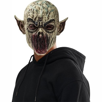 Plunge into a dark, mythical world with our Adult Executioner Mask, where fantastical horror and historical dread collide in a visage of sheer terror. Imagine the hulking figure of an ogreish executioner, his countenance a frightening amalgamation of withered, monstrous features and stark, leather-like coverings, becoming the harrowing centerpiece of your haunting ensemble.The entire head is shrouded with an unsettling representation of a withered head, exuding a presence that's both formidable and frightful. Small, strategically placed eye openings, nestled within the monstrous facial features, ensure a menacing gaze while permitting limited vision as you navigate through your ominous escapades.The mask gracefully blends the ghastly aesthetic of an ogre’s face with the chilling resonance of an executioner’s hood—black covering gracefully draped over the top and ominous bands constricting across the face. Every detail, from the grotesque, contorted features to the meticulous paintwork simulating wear and age, is designed to convey a story of dark fantasy, weaving an eerie tale that lingers in the minds of all who witness it.Embark on a journey into a realm where dark folklore meets tangible fright, embodying an executioner that transcends time and fantasy. Engage in a horror that’s exquisitely grim, where your presence becomes a spectral echo haunting every observer’s deepest fears.