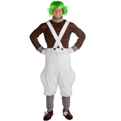 The Fun Costumes Adult Chocolate Factory Worker CostumeAsk anybody what stands out from their favorite classic candy movie, and it's inevitably the little orange workers that have left the biggest impression. So, naturally, these characters are a great Halloween costume choice! We take costumes seriously and as one of the top companies around, our exclusive styles are developed by our own team of artists and designers. And when you want a sweet costume for your next party we're sure this Chocolate Factory Worker Costume will get you into character!Product Design:This costume comes with a brown pullover shirt that features white striped cuffs and collar. White jodhpur knickers fit with crisscrossing suspenders. Boot covers fit over your own shoes and feature white striped cuffs and a pom-pom on eat foot. The synthetic neon green wig completes the character style.Product Details:100% polyester interlock knit fabricBrown pullover shirt has brown & white striped cuffs & mock-turtle collarWhite knickers have Hook and Loop fastener suspenders anchored by brown buttonsBoot covers have brown & white striped cuffs with elastic top edge; brown foot portion has white pompom on toe & elastic band under shoeNeon green wig is synthetic hair on elastic-edged mesh capOfficially licensed. About Us:Fun Costumes are exclusively made by us and begin with passion, teamwork, and industry expertise decades in the making. Our products are proof that with the right people even a simple idea can grow into something incredible. We started in a small garage in Minnesota, providing costumes to our local community, and now we're creating costumes for people all around the world.