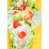 - Inset is edged by ruffled green fabric "lettuce"