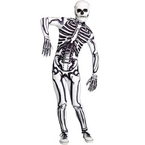The Fun Costumes Classic White Skeleton Costume for MenIf you love bringing monsters and the macabre to life every Halloween there are few characters as hauntingly awesome as a skeleton walking the earth. And when you're ready to terrorize the living, there are few costumes as good as this White Skeleton Adult Costume! Designed to bring the life the look of an animated skeleton, this outfit is designed as a jumpsuit, mask, and gloves. This full-body suit is made with white stretch knit fabric and is printed to look like a complete skeleton with a 360 print on the front and back. A skull mask covers the front of the face and fits over the hood. Along with the matching gloves, it's a complete skeleton costume that will have you ready for Halloween fun!Product Details:88% polyester 12% spandexHooded jumpsuit has back zipper from waist to back of hoodPrinted skeleton on front and backMolded foam mask has elastic band around back of headMask has small eye openings, will restrict visionWrist-length gloves have printed bones on back and palmAbout Us:Fun Costumes are exclusively made by us and begin with passion, teamwork, and industry expertise decades in the making. Our products are proof that with the right people even a simple idea can grow into something incredible. We started in a small garage in Minnesota, providing costumes to our local community, and now we're creating costumes for people all around the world.