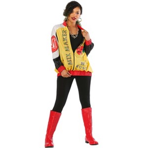 You'll look stylin' for the paparazzi in this unitard, jacket, and gold chain. It's easy to slip into character with a zipper up the back. The jacket has a center zipper with an elastic waistband that celebrates that nineties cut. The jacket proudly proclaims "Mix Maker" to celebrate the secret DJ skills you know are marinating in there somewhere. So slip on some hoop earrings and throw on that "oldies but goodies" playlist cause it's time to get back in touch with your nineties rap roots.