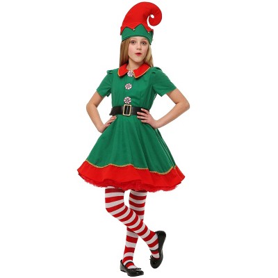 Deck the halls and help St. Nick deliver presents in your Adult Elf Onesie Costume! The onesie is made of super-soft plush fabric and is easy to wear. The green top is decorated with three peppermint-detailed buttons and a wide black fabric belt printed with a gold-tone buckle. The bottoms are striped red and white like candy canes. The attached hood is green and red with white pom-poms.