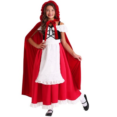 The Fun Costumes Knee Length Red Riding Hood CostumeLittle Red Riding Hood time! Think you've got what it takes to play the iconic character for Halloween? With this stunning Red Riding Hood Knee Length Dress, you'll have both the confidence and the style to be a true classic. And that's what we're all about at Fun Costumes. Made by Us, this costume was created by our very own team of artists, designers, and developers so that we could offer a high-quality Red Riding Hood Costume for the masses. Give it a try, with or without a friend as the Big Bad Wolf, we're sure it will be a lot of fun!Attention to DetailWe designed this Little Red Riding Hood Costume as a dress that comes with an attached hood and cape. The one-piece dress is styled like a peasant blouse, corset, and picnic skirt. The satin hooded cape is red and is sewn to the shoulders for easy wear. With accents like ribbon lacing, ribbon bows, and eyelet ruffles, you're sure to be enamored with its elaborate style!Product Details:100% polyester gingham, satin & interlock knit fabricsOne-piece dress styled to look like corset vest over gingham skirt & peasant blouseSatin hooded cape is sewn to shoulders & back necklineBodice has ribbon lacing through metal eyeletsSkirt is trimmed w/ ribbon bows & eyelet rufflesFastens w/ concealed zipper in right side seamAbout Us:Fun Costumes are exclusively Made by Us and begin with passion, teamwork, and industry expertise decades in the making. Our products are proof that with the right people even a simple idea can grow into something incredible. We started in a small garage in Minnesota, providing costumes to our local community, and now we're creating costumes for people all around the world.