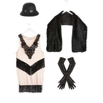 The Fun Costumes 1920s Business Lady Costume for WomenGet this Women's 1920s Business Lady Costume and you'll be ready for a moneymaking spree! The era of the 1920s is one of the most popular themes every Halloween so we crafted this costume to be a versatile women's outfit that's ready for Halloween and Roaring 20s theme parties. The detailed outfit comes with a shirt, pants, and hat. The shirt is white with dark pinstripes and the pants are black with light pinstripes. The pants feature attached suspenders that can be worn up or down. Just pick up a black fedora, and you'll be ready to join a business syndicate!Product Details:Shirt: 100% polyester; Pants: 99% polyester, 1% rayonButton down shirt has button cuffsPants have elastic in the back waistbandPants have false fly with hook and loop closure at frontSuspenders are length adjustableAbout Us:Fun Costumes are exclusively made by us and begin with passion, teamwork, and industry expertise decades in the making. Our products are proof that with the right people even a simple idea can grow into something incredible. We started in a small garage in Minnesota, providing costumes to our local community, and now we’re creating costumes for people all around the world!