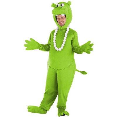 Become the hungriest hippo of them all when you dress up in this classic costume! Inspire by the classic board game, this Yellow Hungry Hungry Hippos Costume quickly transforms you into the Yellow Hippo. The costume starts with a yellow jumpsuit that fits with a zipper in the back. The matching shoe and hand covers are shaped like hippo feet, and the necklace is designed to look like the pellets from the game. Finally, the hood is shaped like the Yellow Hippo's head. It fits with a strap under the chin to complete the costume!