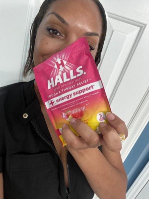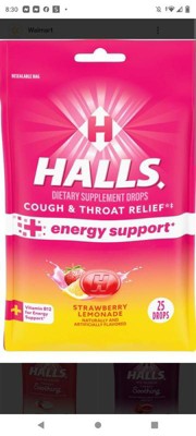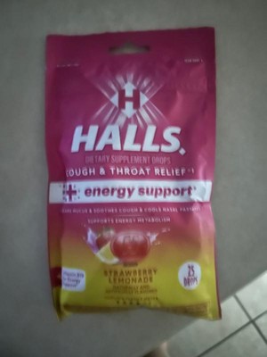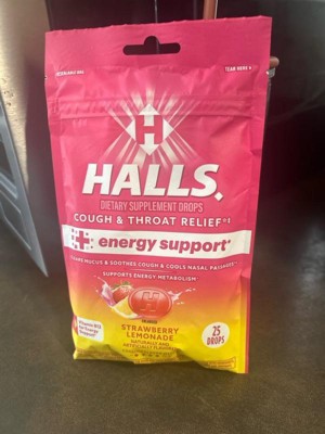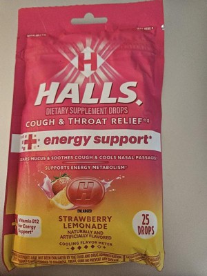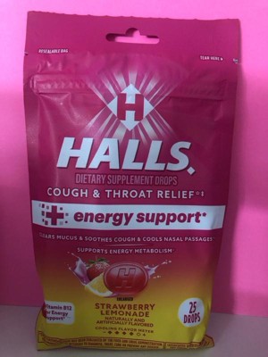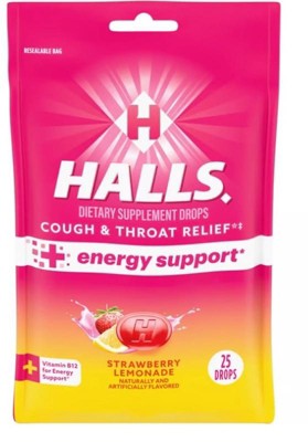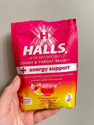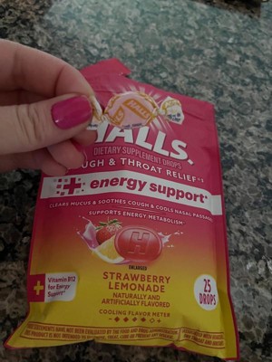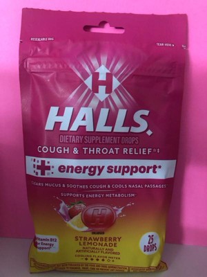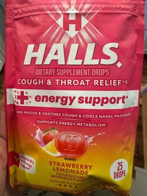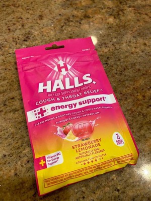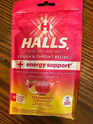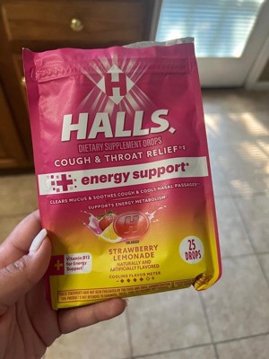 Halls Energy Support Cough & Throat Drops Strawberry Lemonade, Vitamin B6 & B12 Lozenges for Throat Soothing, 25 Count
