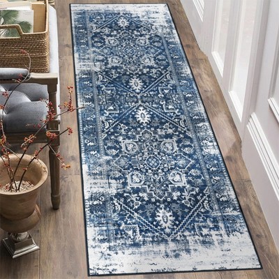 Hallway Runner Rug, Machine Washable Foldable Carpet, Low Pile Plush Polyester Area Rug for Kitchen, Bathroom, Bedroom & Living Room
