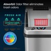 - Premium Features – Retainer Ring prevents bag falling in. Air Vents create air flow to ease bag removal. Non-Skid Base. Manual open/close buttons