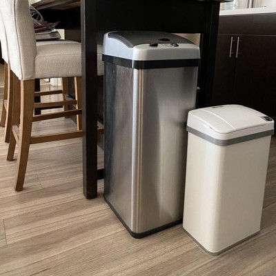 halo quality 4gal Multifunction Sensor Trash Can White: Touchless Motion Kitchen Trash Can, Steel, Removable Lid, 4 AA Battery