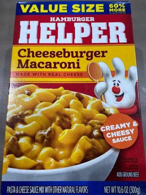 Whip up delicious midweek dinners with Hamburger Helper Cheeseburger Macaroni Pasta Meal — perfect for busy evenings and families on the go. Simply add ground beef or hot dogs, water, and milk to create an irresistible, delectably cheesy meal option for any day of the week. Add your own twist with cooked bacon, shredded cheese or sliced tomatoes for an extra dose of flavor. This cheeseburger macaroni pasta meal is made with real cheese. Try Hamburger Helper for a delicious, easy family dinner option. Since 1971, Hamburger Helper has extended a helping hand to families converging at the dinner table for a delicious meal option.
