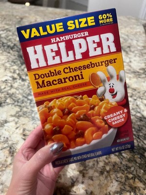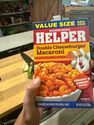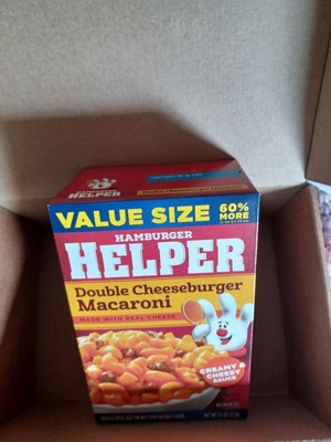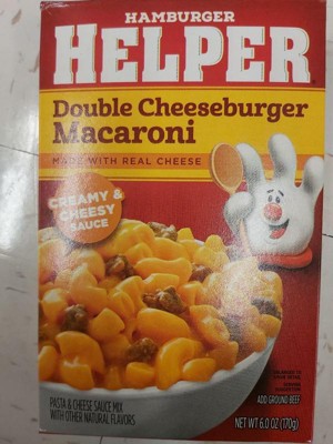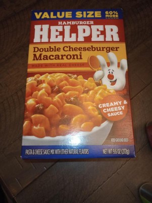 - America’s favorite Hamburger Helper in a double cheeseburger macaroni entrée, blending pasta and cheesy sauce.