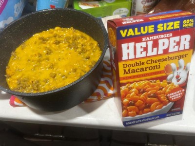 [This review was collected as part of a promotion.] This double cheeseburger macaroni hamburger helper was soooo delicious. It’s worth the money and the ingredients aren’t that great but it’s so good