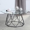 Unveil the shades and engage nature indoors. The sunshine will reflect beautifully off the tempered glass tabletop. This modern octagon-shaped coffee table sits on steel support with a complex geometric design. Choose between a modern black, neutral dark gray, or minimalist white finished table. The open and airy base design evokes a friendly environment in the living room or home office.