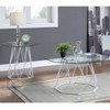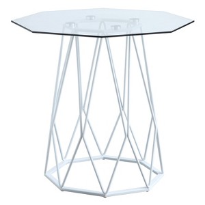 Open the living room with a refined octagon-shaped side table. The tempered glass tabletop sits on a cage-like steel base. The intricate metal frame complements the overall geometric design. Flaunt the trendy end table in the sitting room, home office, or bedroom. Choose between a black, gold, or white finish to complete your chic home.