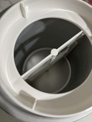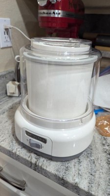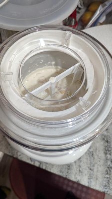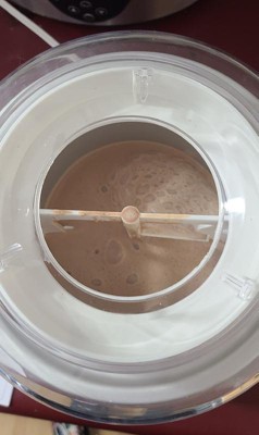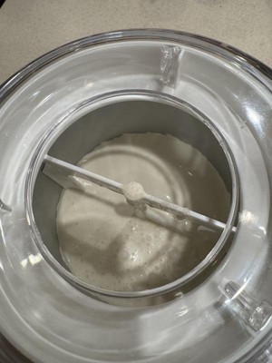 [This review was collected as part of a promotion.] TL;DR: Good news: it works very quickly, is easy to use clean, the manual has 6 recipes Things to keep in mind: it is very loud (especially when it finishes mixing), don't use metal to scrape the ice cream off the bowl So far we have made the "Peaches and Cream Ice Cream" twice. The first time we had stored the bowl in our chest freezer and the liquid froze so fast (~5-10 minutes instead of the expected 20-40 minutes) and we thought something was wrong. The outer layer had frozen (and made the maker think it was finished) but the inside wasn't frozen yet. In hindsight, I think we should have chopped the peaches finer or waited to add them until after the cream had thickened. When were getting the (very) frozen ice cream off the sides, we were using a metal spoon (I didn't see any warnings against this in the manual) but the finish inside is a little damaged now. So I would recommend using a spatula, which has worked great since because the ice cream is more of a soft serve consistency rather than a really thick ice cream. The second time we pre-froze the bowl in our regular freezer and made a half batch. The mixture froze better and the ice cream was finished in about 10 minutes (compared to the expected 20-40 minutes for a full batch). A heads up for new users: the machine is quite loud. Especially when the ice cream has frozen enough and is done, causing the machine to just move back and forth. It honestly made me think the machine was broken because I wasn't expecting it to be so loud. Both times we have used it, everything was really easy to clean. The manual is really clear about what can and can't be washed and how to do so. About the manual: - it has 6 recipes: 2 different vanilla ones, chocolate, strawberry sorbet, peaches and cream, and a cappuccino gelato - there is a brief troubleshooting section and a "Tips for Best Results" section that are helpful - after our experience in the chest freezer, I wish it included warnings about if it was possible to get the bowl too cold or not Final note: the sticker on the front of mine is sticking out a little bit but it's not affecting the usability of the machine so I didn't use that to affect my rating.