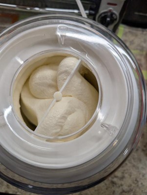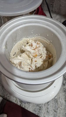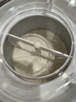 [This review was collected as part of a promotion.] This is a really cool and fun little machine. I wanted to love it - and may still in time! - but our first attempt ended up basically flavored whipped cream! The machine itself is very very simple and straightforward to use. It’s a good size, making several servings of ice cream without taking up too much room in your cupboard or on the counter when you’re using it, but I think it must just taking some experimenting to get the recipe dialed in. We tried the recipe for vanilla ice cream in the manual and it seriously came out literally 100% like the texture of whipped cream. Just a little bit shy of whipped butter honestly! To the point that it didn’t melt when stored in the fridge. I think it was over-mixed but I’m really not sure because we kept checking it and it didn’t seem the right consistency any earlier. In any case it’s a fun machine and if we could get the recipe right I bet it would make great ice cream.