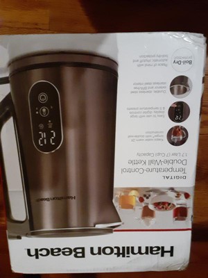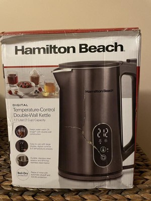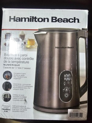 Hamilton Beach 1.7Liter DoubleWall Dig SS Kettle 40851: Electric Water & Tea Heater, 1.7L, Stainless Steel, 1500W, Black