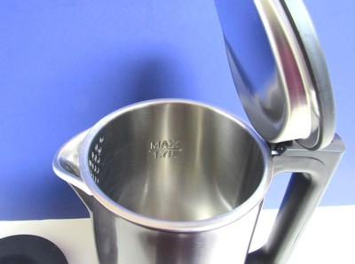 - DURABLE, BPA-FREE, FOOD-GRADE STAINLESS STEEL INTERIOR. The durable stainless steel interior of this electric tea kettle provides years of long-lasting performance, is easy to clean and has a MAX fill line for easy filling.