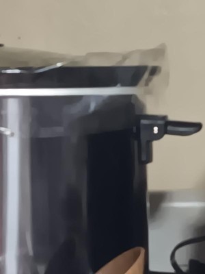 The only reason I chose this crockpot is because it’s the only one I could find that was 10 quarts, but for the price of this crockpot it is very basic. The outer part of the crockpot is very flimsy where you almost feel afraid of denting it just by touching it. The most frustrating part is how tiny the handle is on the lid.