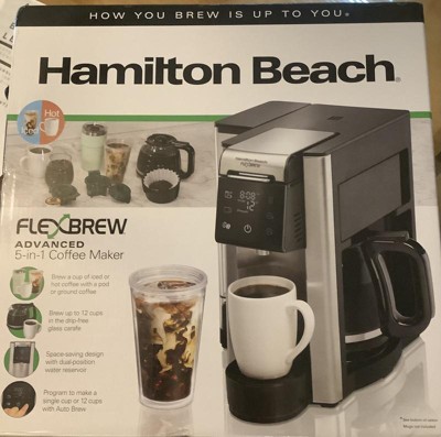 Hamilton Beach 12c FlexBrew 5 in 1 Drip Coffee Maker Black: 12 Cup Programmable & Single Serve, 1200W, Ground & Capsule Use